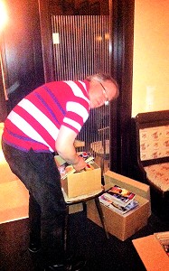 Je später der Abend, desto weniger die Hefte. Die von der SFGW mitgebrachten PR-Romane hatten sich schon deutlich dezimiert. Die restlichen drei Kartons teilten sich schließlich Michael R. und Klaus H. auf. Klaus war sich noch unsicher, was seine Freundin zu dem platzraubenden Packen Altpapier sagen würde, Michael machte seinen Karton transportfertig für die U-Bahn – ohne Schweiß kein Preis.