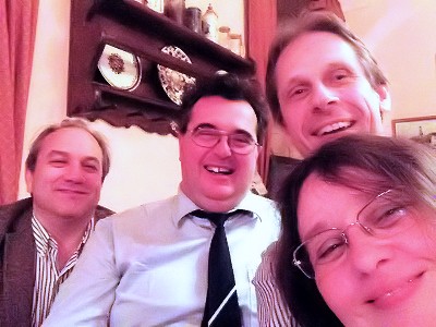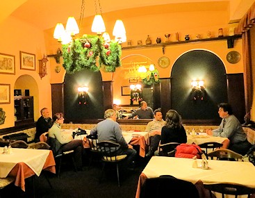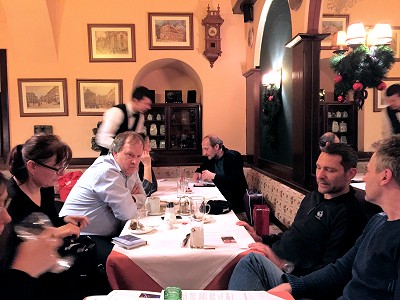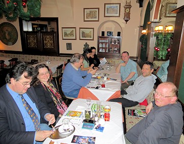 Zu relativ früher Stunde sind bereits einige Gäste gegangen, aber mit Romans Hilfe lassen sich noch alle heutigen Teilnehmer rekonstruieren: Roman, Michi Sm., Hannes, Irene, Klaus Ha., Franz, Claudia und Erich, Michi R., Roswitha, Karl Heinz, Hans Peter, Manfred, Heimo, Martin, Hermann, Andreas und Gerald. Bis um halbzwölf sollte sich die Runde noch auf etwa 5 Fans reduzieren, aber der Gesprächsstoff ging an diesem letzten Stammtischabend des Jahres trotzdem nicht aus. Michael Marcus Thurner hatte zwar einem anderen Michael, nämlich dem Sm., versprochen zu kommen, hatte es dann aber offenbar doch nicht geschafft.