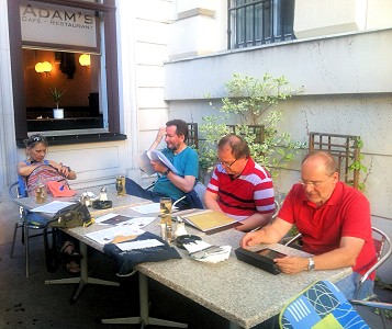 Für einen schwülen Augusttag waren heute jedenfalls viele Fans in das Hinterzimmer von „Adams Gasthaus“ gekommen, nämlich Heimo, Manfred, Thomas K., Irene, Erich und Claudia, Gerhard H., Klaus, Hannes, Franz, Wolfgang, Roman, Hermann, Andreas L., Martin und die Neuzugängerin Maria.