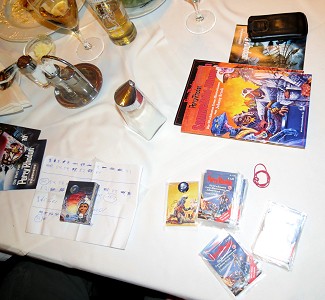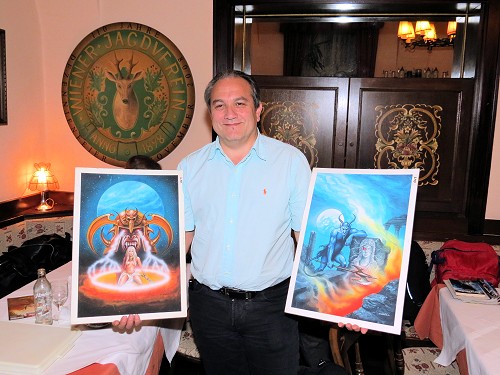 Mehrere Fans hatten sich eingefunden, Irene, Thomas, Erich, und dazu stießen noch Klaus sowie Roswitha in Verkleidung (leider nicht auf den Fotos) und natürlich Martin. Mit einem Stand war Franz Miklis auf Börse und präsentierte neben Originalen von "Game of Thrones" Sammelkarten zahlreiche seiner Kunstwerke, die wie immer alle begeistern.