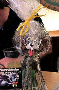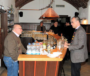 Zum Glück bzw. überraschenderweise war das Essen halbwegs ausreichend. Eine Woche vor dem Stammtisch wurde noch erhoben, wie viele Leute kommen würden, um genug Verpflegung heranzuschaffen. Es gab 12 Zusagen, 2 Vielleichts und 3 Absagen (Georg P., Martin, und Michael Sm., der am Land war Schneemann bauen). Gekommen sind dann doppelt so viele! Das hatte nicht nur die logistischen Planungen über den Haufen geschmissen, sondern auch die statistischen. Laut Aufzeichnungen wären für den 4.000sten Jubiläumsgast an diesem Abend zumindest 17 Gäste notwendig gewesen, und da lagen die Zusagen um einiges darunter. Erst, als sich die Bude füllte, wurde bewusst, dass der Jubiläumsgast schon anwesend sein musste, nur – wer war es? Jetzt begann eine mühsame Rekonstruktion, wer in welcher Reihenfolge gekommen war. Als das Ergebnis schon fast feststand, musste es nochmals korrigiert werden, und schließlich bestieg Gerhard H. den 1.000er-Thron. Immerhin würde es jetzt wieder rund vier bis fünf Jahre dauern, bis der 5.000er fällig ist. Knapp vorbei ist auch daneben waren Karl Heinz (3.999) und Hannes (4.001).