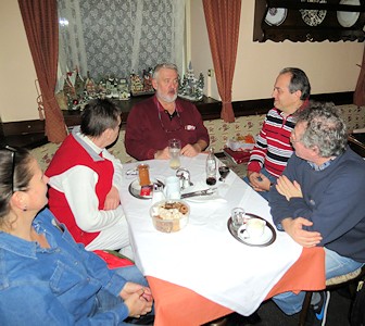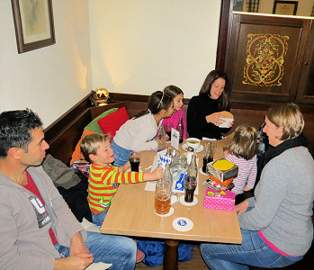 Abgesehen von der Inneneinrichtung hat sich auch die Speisekarte etwas geändert und wurde um typisch bayrische Gerichte ergänzt. Wie unser Extrastüberl eingerichtet wurde, konnten wir allerdings nicht feststellen, da es aufgrund der Verschiebung des Stammtischabends belegt war und wir mit einem eher kleinen Kammerl – aber auch schön hergerichtet – Vorlieb nehmen mussten. Und das passt zufällig wie angegossen – an diesem Abend kamen nur 13 Fans, und dafür war es gerade richtig, nämlich für Hermann, Andreas, Thomas K., Heimo, Erich und Claudia, Wolfgang, Irene, Roman, Karl Heinz, Uwe, Klaus und Thomas, der noch zu später Stunde vorbeigekommen war.