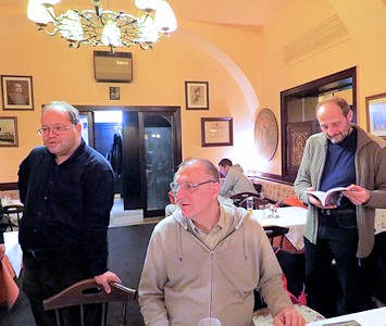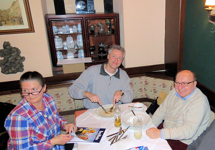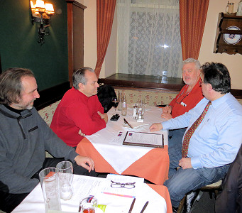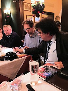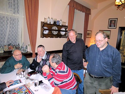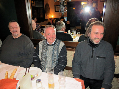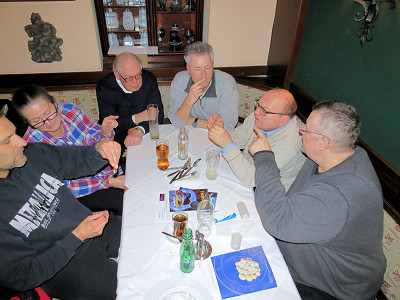 Aber zurück zum eigentlichen Thema - es war ein Abend, an dem man keinen Hund vor das Haus jagt – finster, kalt, regnerisch, und einige hätten von der Silvesternacht zuvor noch jede Menge Schlaf nachzuholen gehabt. Nichtsdestotrotz kamen an diesem 2. Jänner 2015 insgesamt 20 Fans zum Wiener PERRY RHODAN-Stammtisch, um im Extrastüberl von Adams Gasthaus eine nette Zeit mit gutem Essen und angeregten Gesprächen zu verbringen, nämlich Manfred und Elisabeth, Karl Heinz, Irene, Franz, Hannes, Gerhard K., Gerhard H., Heimo, Thomas, Thomas K., Charly und Lisi, Klaus, Erich, Roman, Andreas, Wolfgang, Hermann und Roswitha.
