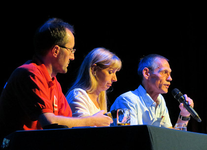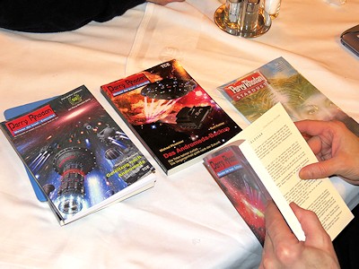 Mit den Vorträgen, die von Freitagabend bis Sonntagnachmittag liefen, wurden so gut wie alle Aspekte des Perryversums abgedeckt - Erstauflage, NEO, Hörspiele, Figuren, Sammelkarten, Fanfilm, Perrypedia, STARDUST, Silberbände, Raumfahrt, Risszeichnungen, STELLARIS, Chronik – da blieb kein Fanauge trocken. Ergänzt wurde das Ganze noch durch Preisverleihungen, die Versteigerung, eine Autogrammstunde, Kabarett, Werkstattberichte, Quiz, Kaffeeklatschrunden – da müsste man sich klonen können, und zwar mehrfach!