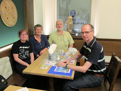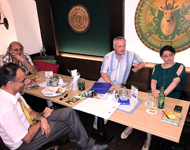 Nicht am Tisch, aber in Gedanken bei uns waren Martin Erasmus, der fleißig Werbung für die nächste Wiener Comicbörse machte, Jo und Gerhard Förster, der wieder gesundet ist und fleißig an der nächsten Ausgabe der SPRECHBLASE arbeitet. Somit also sieben Fans, die sich bei diesem externen Treffen der Rhodan-Stammtischler zusammengefunden hatten.