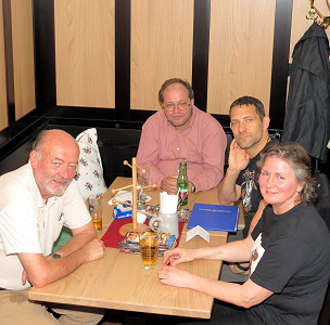Eine weitere interessante Begegnung gab es mit dem bekannten englischen Zeichner Bryan Talbot, der schon zahlreiche Awards gewonnen hat und unter anderem »Batman« zeichnet. Als er abends in einem der Brauhäuser mit seiner Frau an einem Nebentisch von uns saß, fragte er kurzerhand, ob er uns »joinen« darf und so führten wir ein interessantes Gespräch in »broken English«.
