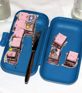 Gleich zu Beginn startet immer das große Auspacken. Erich zaubert aus seinem schwarzen Transportkoffer Infomaterial und Goodies vom Verlag und verteilt die Sachen auf den Tischen, in den großen Pappkartons befinden sich meistens die Sammelbestellungen, die nach und nach unters Fanvolk gebracht werden, immer verbunden mit der Hoffnung, nicht allzu viel davon nach Hause schleppen und beim nächsten Mal wieder mitbringen zu müssen. Andere haben Romane, Zeitschriften oder sonstiges Lesematerial dabei, das sie um kleines Geld verkaufen oder einfach nur losbringen wollen. Etwas Besonderes hatte Irene auszupacken, nämlich selbstgebackene Mehlspeisen. Normalerweise braucht sie keinen Grund dafür, aber der war heute auch ein besonderer – sie feierte den 100. Stammtischbesuch und wurde auf der Homepage in die Ehrengalerie aufgenommen.