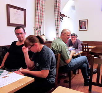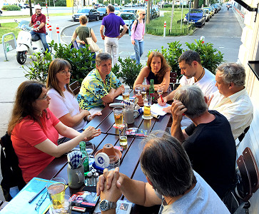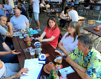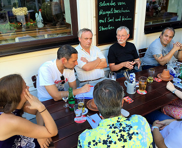 Harte Arbeit in gemütlicher Atmosphäre - gemütliche Con-Besprechung im Biergarten!