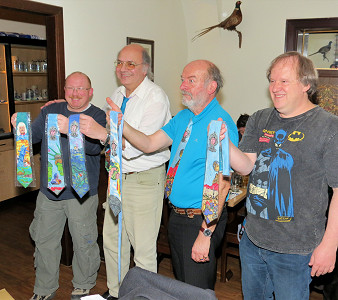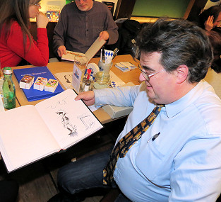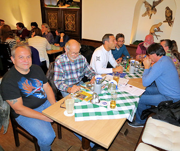 Zwischendurch wurde über Autos und Autoreifen geplaudert, ein eher ungewöhnliches Thema beim Stammtisch. Etwas gängiger war da schon das Thema »Comics«, zu dem Wolfgang eine Menge zu erzählen hatte, da er in Erlangen beim Comicsalon war. Neben einigen Mitbringseln gab es viele Widmungszeichnungen zu bewundern sowie ein Stickeralbum mit Bildern der Veranstaltung.