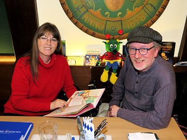 Und dann waren da noch die Neuen, die entweder beim Con gewesen sind oder einen der Fernsehbeiträge gesehen hatten. Rudi war extra aus Gänserndorf angereist und wollte jedenfalls wieder dabei sein. Franz mit über 80 Jahren ist einer unserer ältesten Gäste, natürlich Leser der ersten Stunde, hatte dann aber aus beruflichen Gründen lange nicht mehr gelesen. Mario hatte beim Con offenbar einen guten Eindruck von den Leuten gewonnen und einen Besuch beim Stammtischabend nachgeschoben. Heike und Hannes hatten nach dem Con noch eine Woche Urlaub angehängt und Wien erkundet. Zum Abschluss ging es ins »Hofbräu zum Rathaus«, bevor der Flieger am Samstag wieder Richtung Heimat startet. Hannes hatte übrigens beim Con den von Irene kreierten »Mozart-Gucky« ersteigert. Und vor sechs Jahren, beim Austria Con 2010, hatte er auch schon den »Trachten-Gucky« mit nach Hause genommen – ein Wiederholungstäter mit Vorliebe für bepelzte Einzahnnager also.