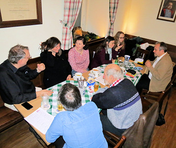 Große Runde beim Weihnachtsstammtisch - mit dabei die AutorInnen Michael M. Thurner und Madeleine Puljic.