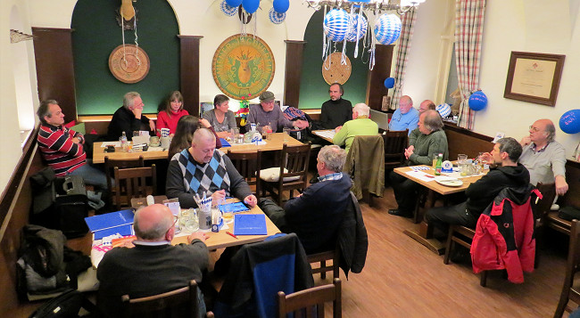 Den wahren Rhodan-Fan schreckt nichts ab, auch nicht die Gefahr, dass es im Stammtischlokal im Winter nur 17 Grad haben könnte. Allerdings – ich habe es auch niemandem gesagt, dass mich ein solch warnendes Mail einige Tage vor dem ersten Freitag des Monats Februar 2016 erreicht hatte und auf die Gefahr hinwies, dass die Temperaturen im »Hofbräu zum Rathaus« nur geringfügig höher sein könnten als draußen im Freien. Vor allem war für diesen Abend auch die große Rüssi-Aktion angekündigt, die zahlreiche Besucher erforderte …