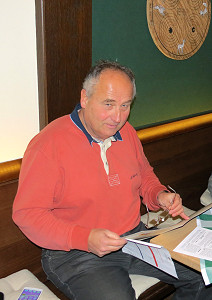 Neben den üblichen Verdächtigen waren heute auch einige Gäste gekommen, die sonst eher selten da sind, wie etwa Raimund Peter und seine Frau Gerti, die gemeinsam mit Joe Kutzner vom TCE http://www.terranischer-club-eden.com/ die Rüsselmops-Rettungsaktion ins Leben gerufen haben. Dazu vielleicht ein paar Worte zur Vorgeschichte, die an diesem Abend auch von Reinhard Habeck als Betroffenem kurz erzählt wurde. Der »Rüsselmops« ist ja für die Rhodan-Fans kein Unbekannter. Seit Jahrzehnten treibt er im PERRY RHODAN-Report (PRR) sein Unwesen und Reinhard hat auch in jedem seiner Mystery-Bücher entsprechend einen Bezug zum Perryversum hergestellt. Eine langjährige Partnerschaft also, die Reinhard Habeck bei seinen zahlreichen Aktivitäten auch zu einer Art Rhodan-Botschafter gemacht hat. Nun wurde von einem Tag auf den anderen der Rüsselmops-Comic im PRR eingestellt. Die Gründe seien dahingestellt, jedenfalls kam es zu einem gewaltigen Aufschrei im Fandom, der schließlich von Joe und Raimund in Form einer Protestaktion kanalisiert wurde. Dazu wurde nicht nur eine Internetseite eingerichtet, sondern es wurden auch über 1.000 Postkarten gedruckt, mit denen man seinem Unmut über Rüsselmopsens Ende der Redaktion mitteilen kann. Raimund verteilte die Karten, Erich hatte Briefmarken dabei, und die Fans beschrifteten die Karten und ließen sich das sogar 80 Cent Auslandsporto kosten. Reinhard Habeck war schwer beeindruckt von dieser Solidaritätskundgebung und erzählte derweil Geschichten über die Erlebnisse seiner letzten Reisen nach Ägypten und nach Italien ins Tal Valcamonica mit den berühmten Felsritzzeichnungen. Er bekam auch endlich seine Belegexemplare der Rüsselmopsmarken-Briefe, die Erich aus Garching mitgenommen hatte.